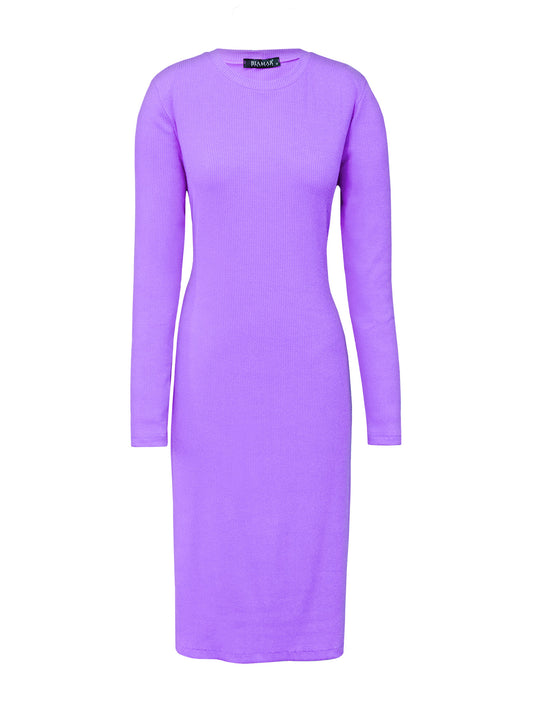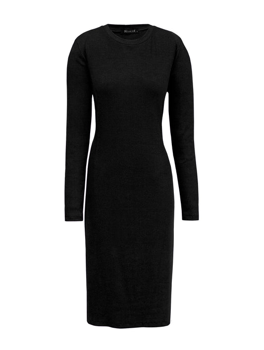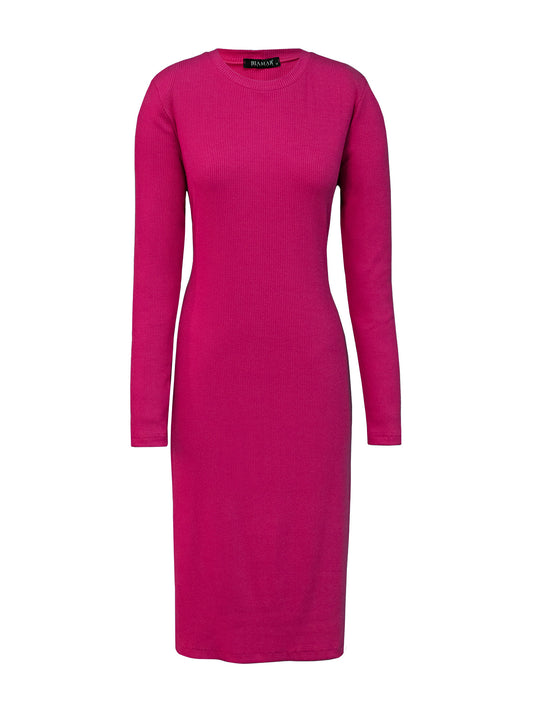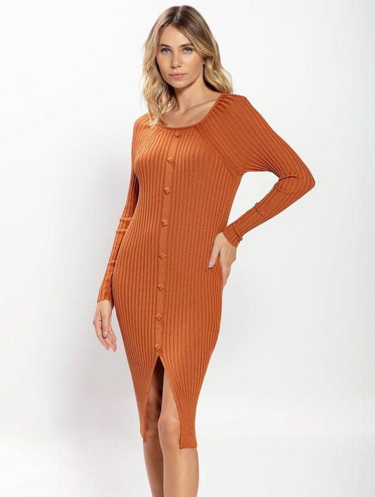 Vestido canelado de gola redonda com detalhe em botões e fenda Urbanity