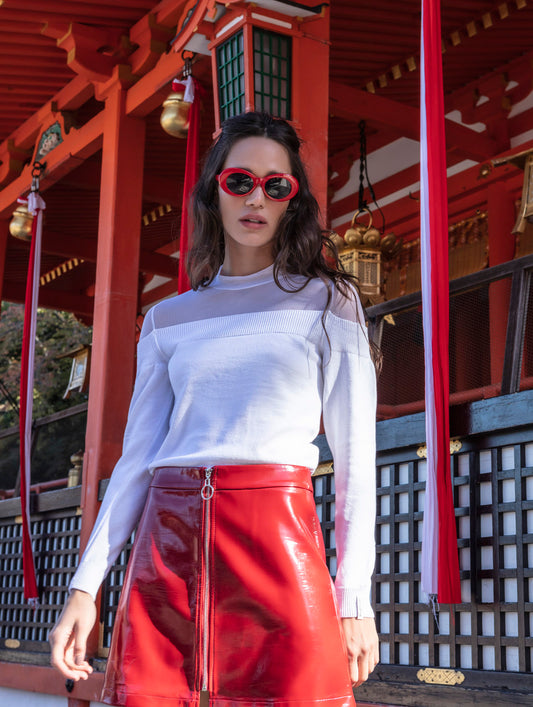 Blusa com recortes, gola redonda e uma manga longa de cava posta Urbanity