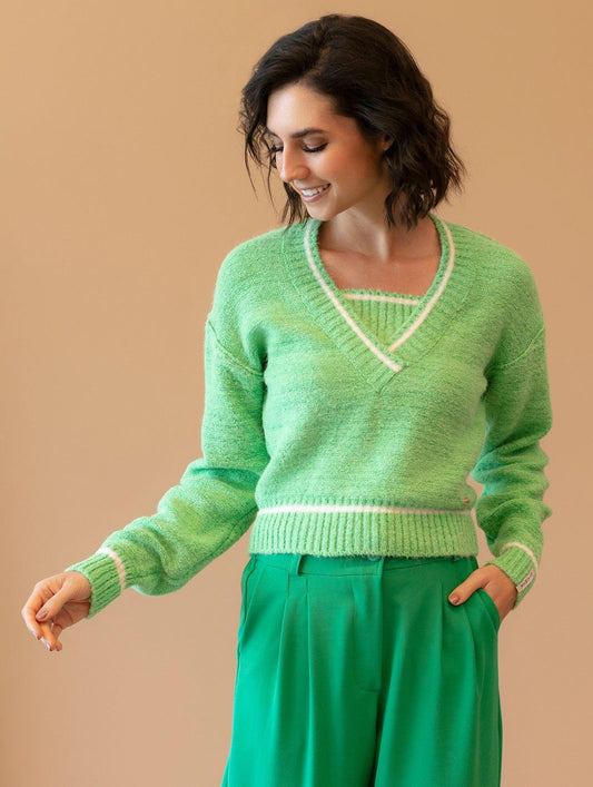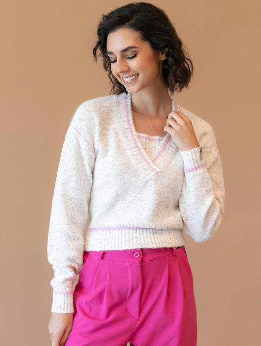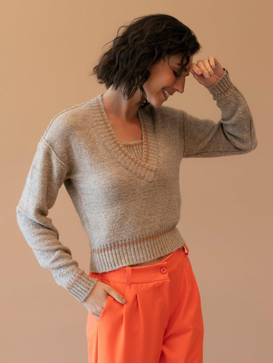 BLUSA COM DECOTE EM “V”, DETALHE EM LISTRAS E MANGAS DE CAVA QUADRADA URBANITY 10586