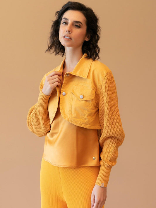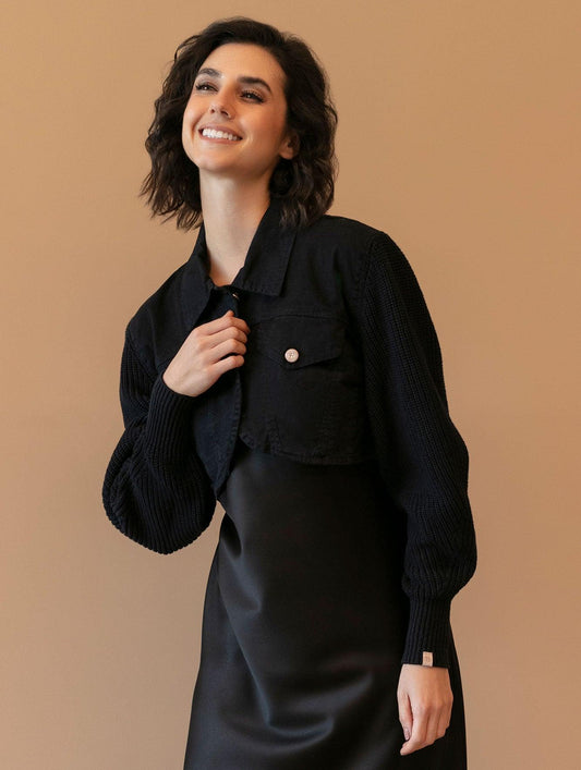 JAQUETA CROPPED EM ALGODÃO COM BOTÕES E MANGAS DE CAVA POSTA URBANITY 10769