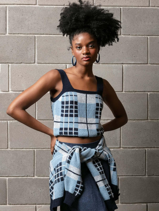 REGATA CROPPED EM PADRONAGEM XADREZ COM DECOTE QUADRADO URBANITY 10461