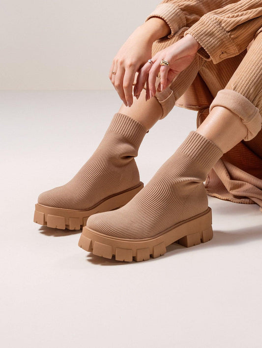 BOTA BERLIM EM MALHA KNIT DE CANO MÉDIO E SOLADO TRATORADO BIAMAR OUTLET 50008