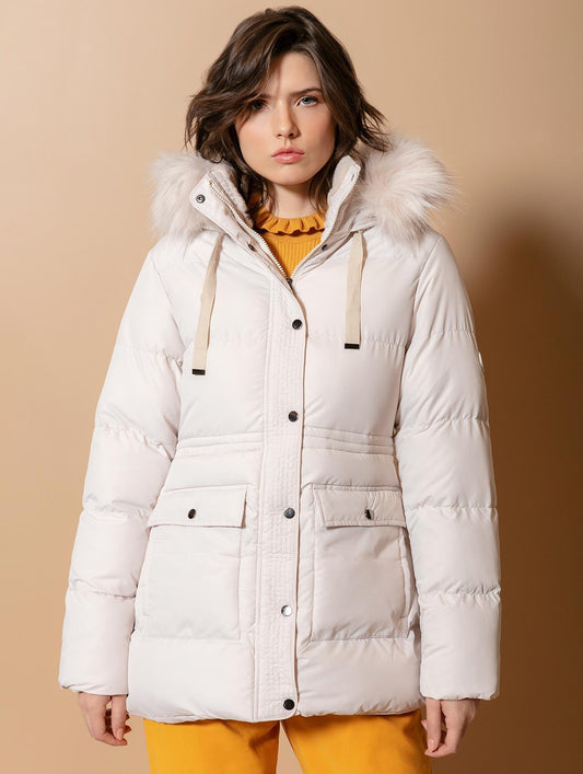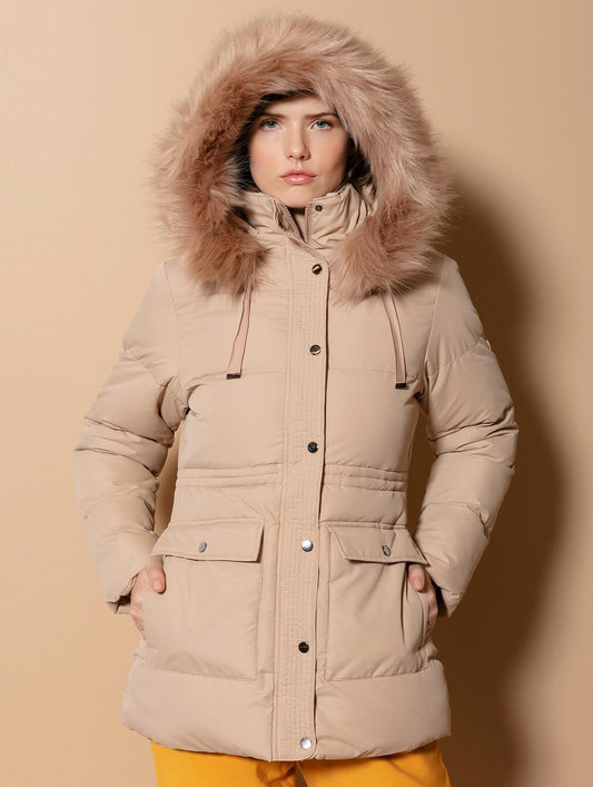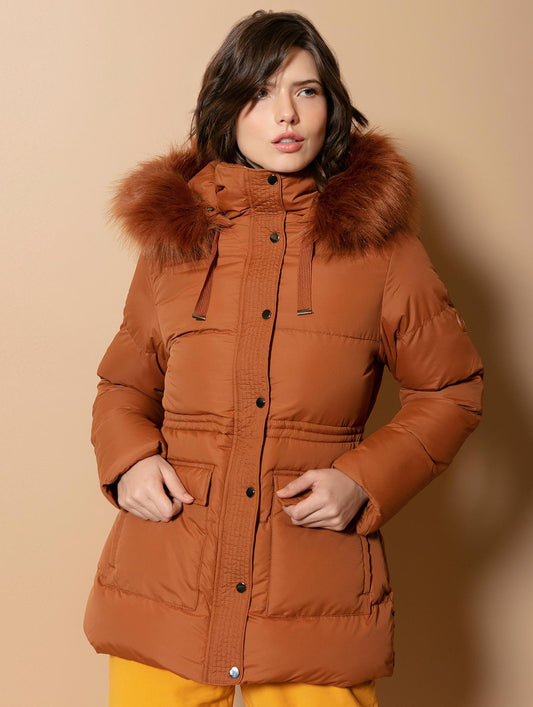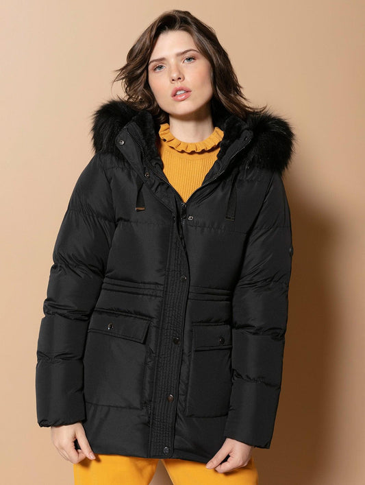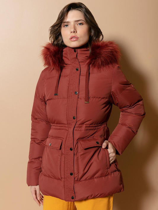 JAQUETA ALONGADA COM CAPUZ AJUSTÁVEL EM PELE FAKE, BOLSOS E MANGAS DE CAVA POSTA BIAMAR 51026