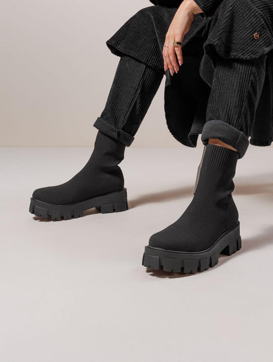 BOTA BERLIM EM MALHA KNIT DE CANO MÉDIO E SOLADO TRATORADO BIAMAR 50008