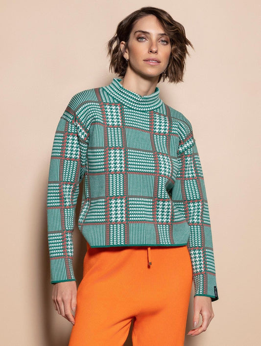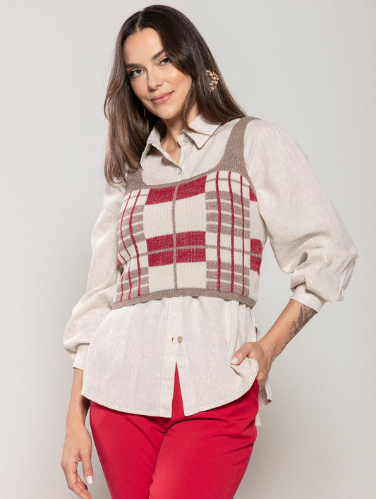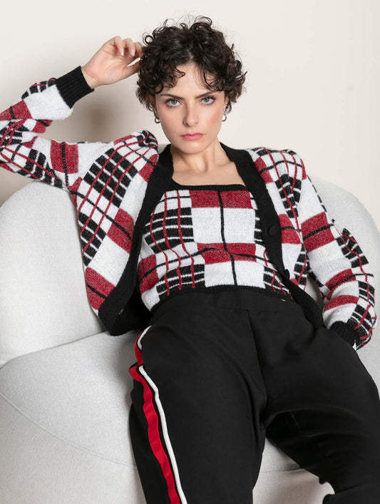 BLUSA EM PADRONAGEM XADREZ COM GOLA MÉDIA E MANGAS DE CAVA QUADRADA URBANITY 10907