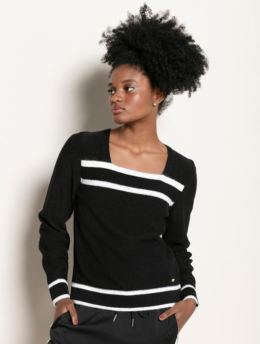 BLUSA COM PADRONAGEM EM LISTRAS, DECOTE QUADRADO E MANGAS DE CAVA POSTA URBANITY 10610