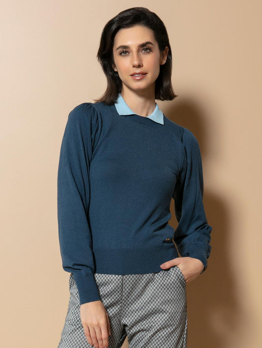 BLUSA COM EFEITO DE SOBREPOSIÇÃO E MANGAS BUFANTES DE CAVA POSTA URBANITY 10674