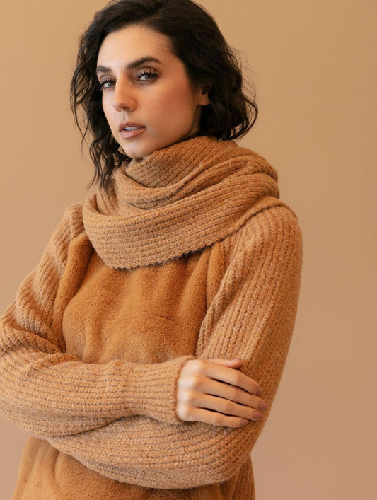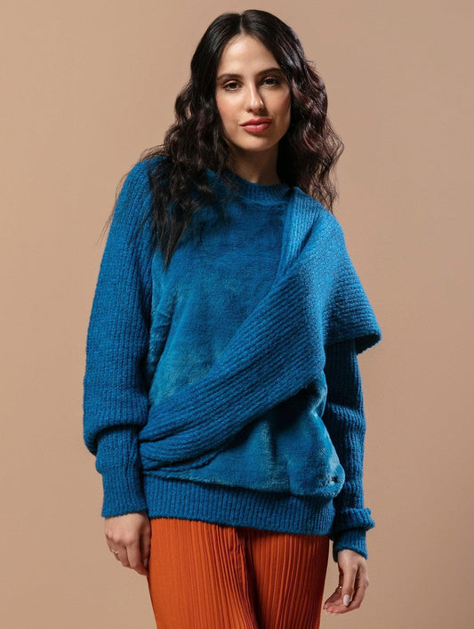 BLUSA ALONGADA COM PELE FAKE, GOLA REMOVÍVEL E MANGAS DE CAVA RAGLAN URBANITY 10671
