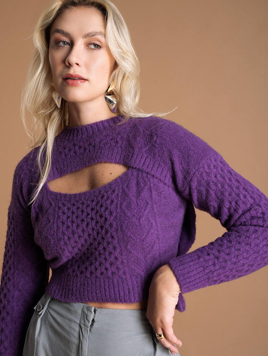 BLUSA DE GOLA MÉDIA E MANGAS DE CAVA QUADRADA COM TRANÇAS URBANITY 10624