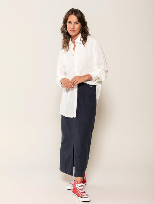 CAMISA ALONGADA COM DETALHES DE BOTÕES E FENDAS LATERAIS BIAMAR 11593