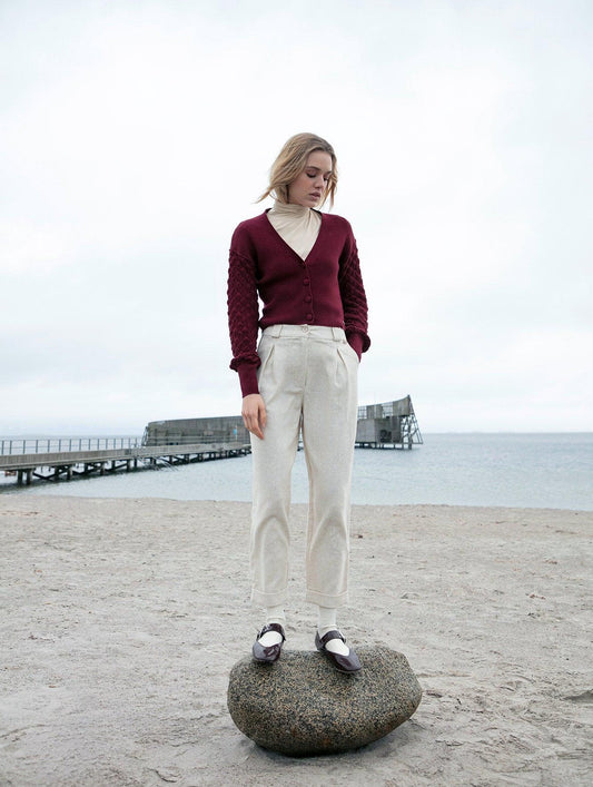 CALÇA COM PREGAS, BOLSOS FACA E BARRA DOBRADA ABENÇÃO 11772