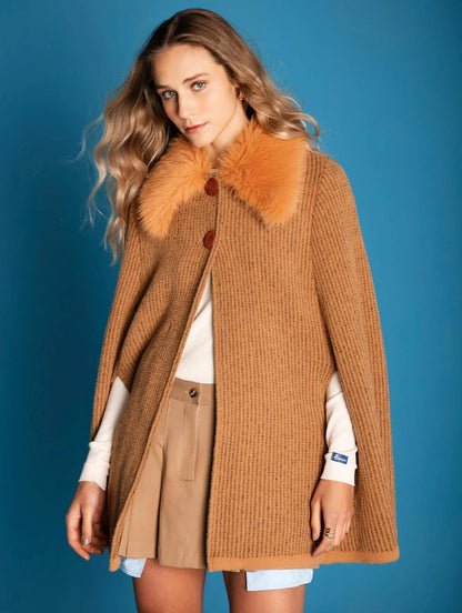 Aqueça o seu inverno com a capa com pele fake e botões aBenção. De modelagem ampla e levemente alongada, cobre e envolve o corpo de forma aconchegante e elegante.
